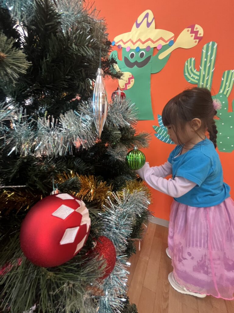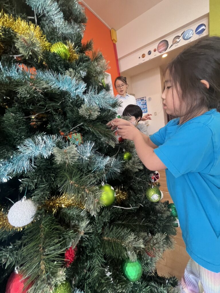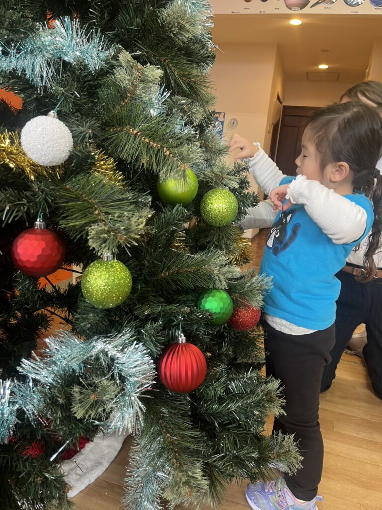After, we decorated the Christmas tree all together, choosing the ornaments and putting them up on the branches. We had a blast, making our tree beautiful andsparkly!