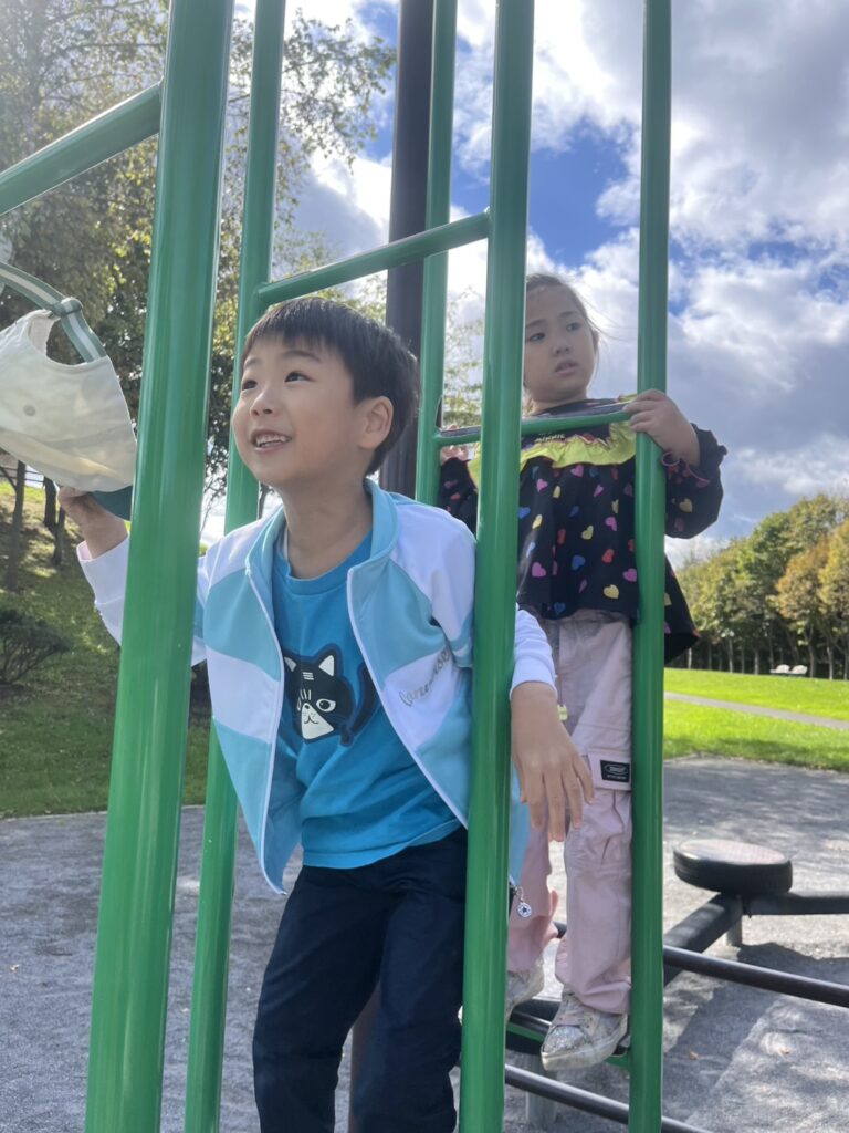 Some of the older kids challenged themselves with jumping from step to step, then climbing up and down vertical bars, training their motor skills and coordination.