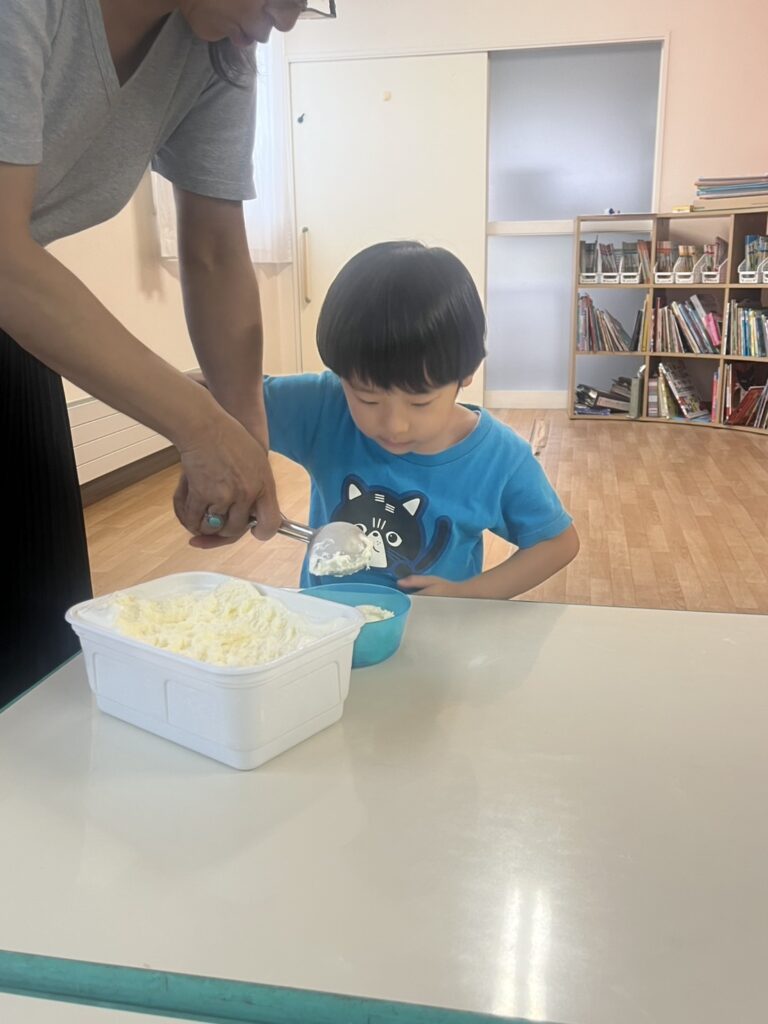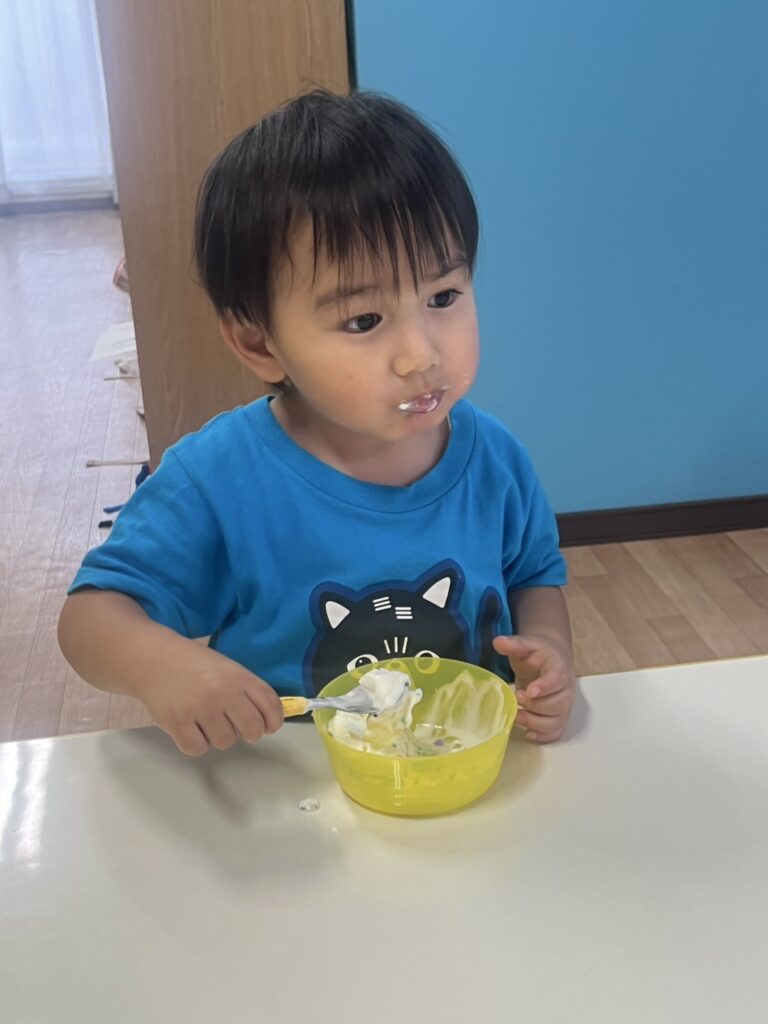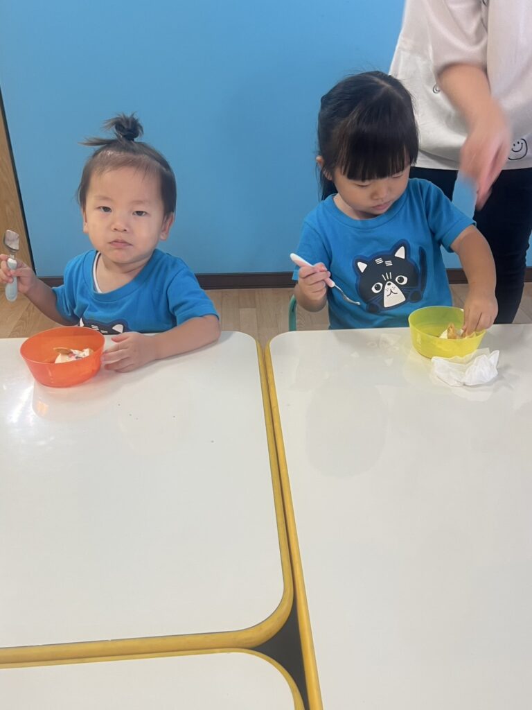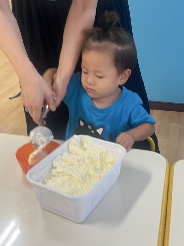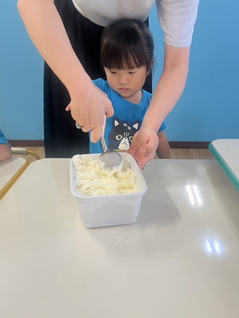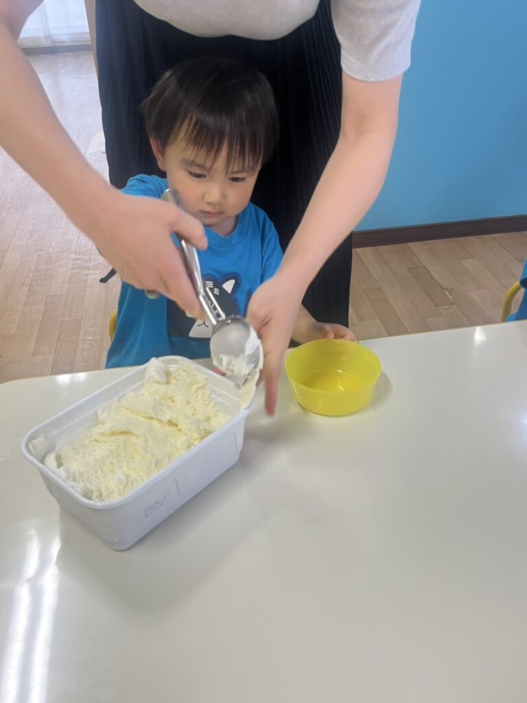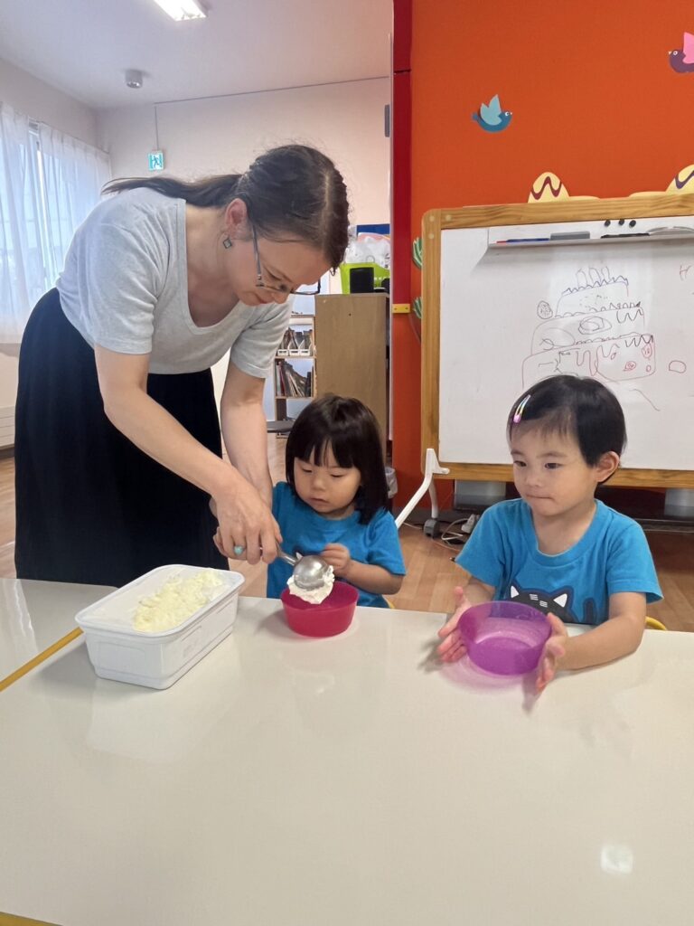 The birthday snack was a “Self-scoop” ice cream sundae, topped with cute animal biscuits and colorful sprinkles. We had the student try to scoop their own giant vanilla ice cream ball, showing them how to drop it in the bowl, and they had a blast.