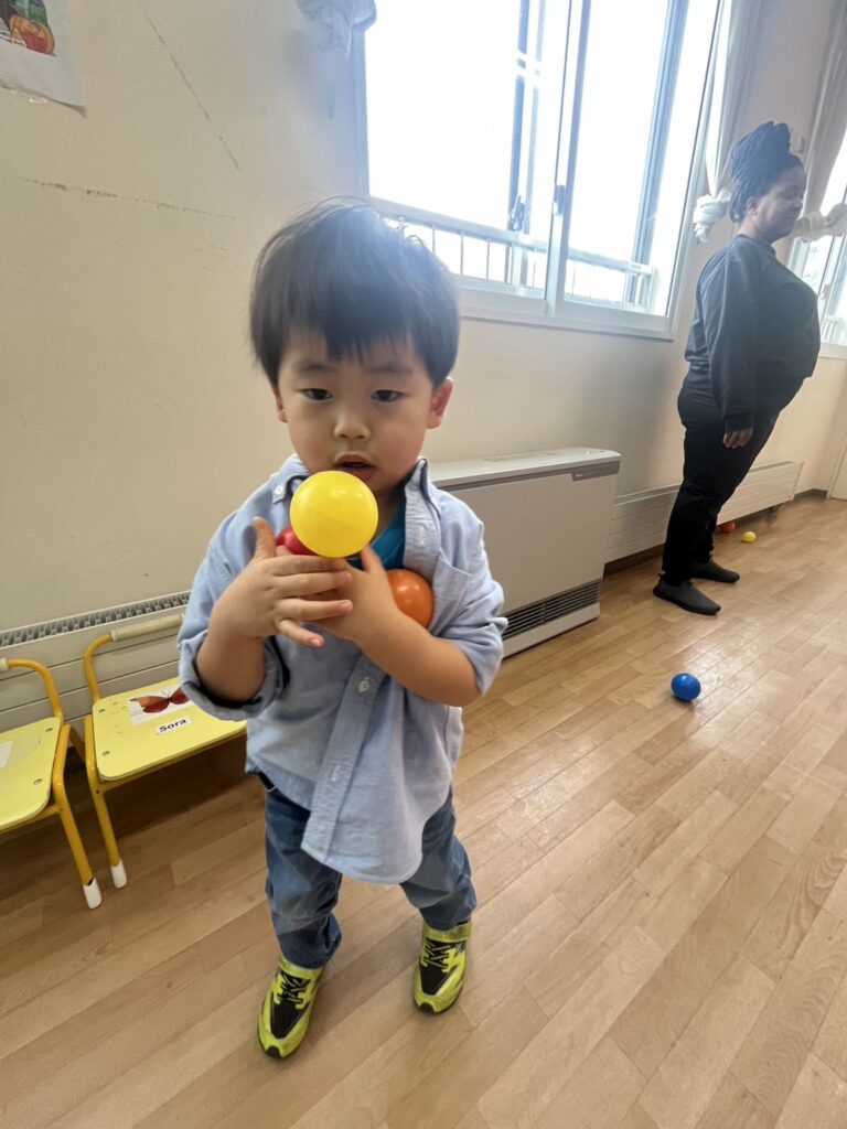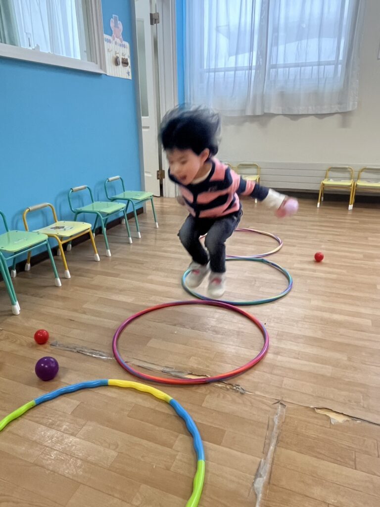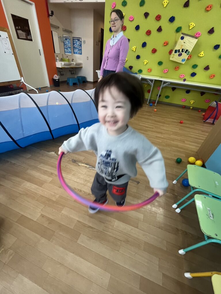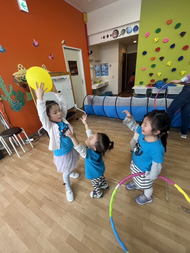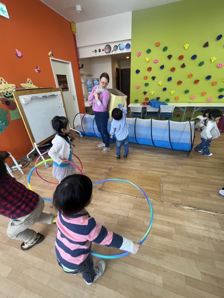 We had a few stations ready: hula hoops, tunnels, balls, and even bowling! Plus some balloons for good measure.