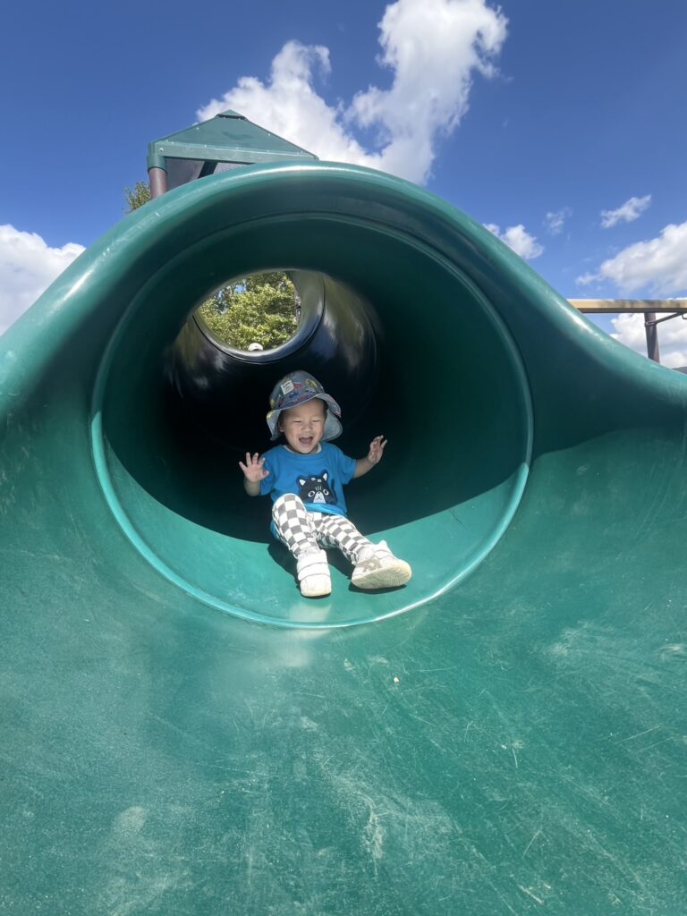 Afterwards, we moved to the area where the installations were, and let the kids go wild: it was time to climb, slide, ride, and fly on a zip rope line!