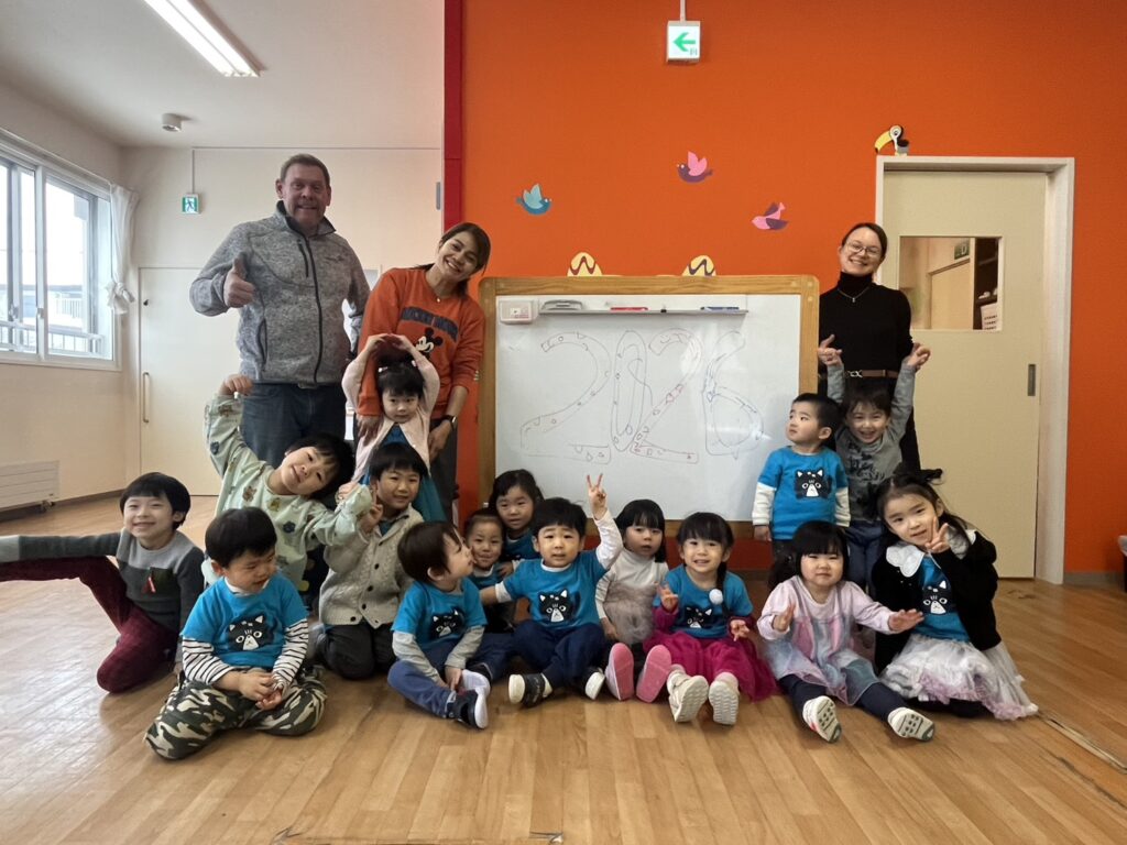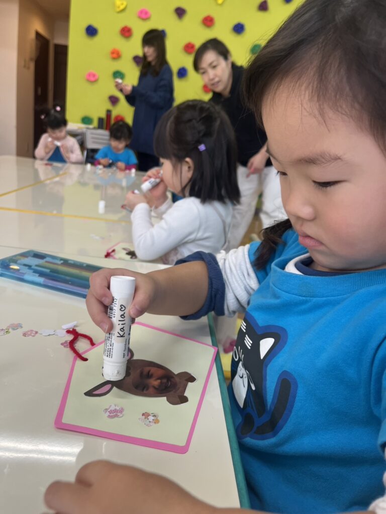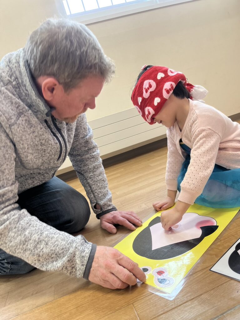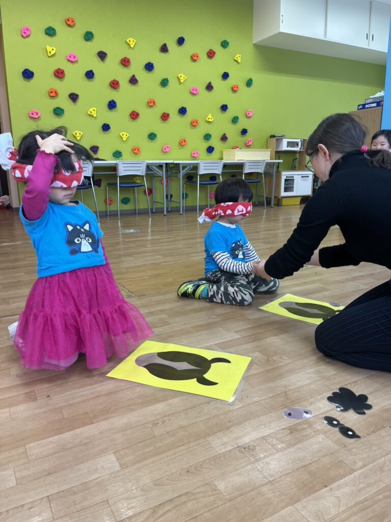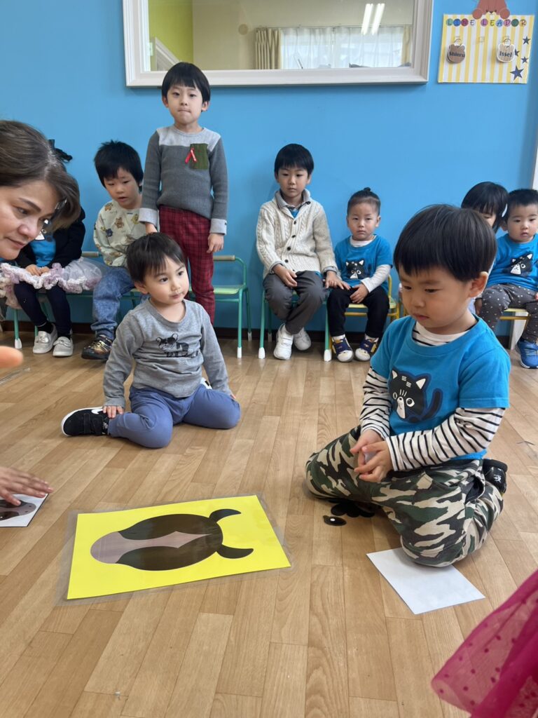 First, we played a “card memory game, where the kids, in groups, chose two cards and tried to find the same cute picture and win points for their teams. The kids were great at remembering!