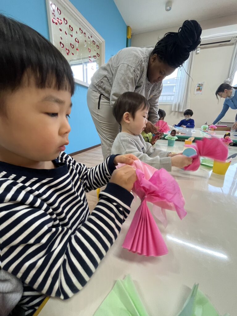 After all that creative burst of activity, we recovered with a sweet snack break, eating crunchy, delicate rice cracker flowers and drinking our kid-friendly version of amazake: Calpis! It was a huge success and a much more pleasant experience for everyone.